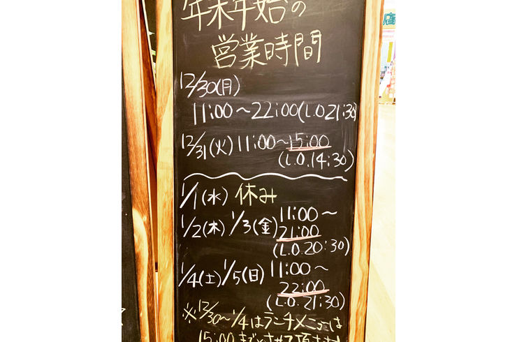 | 営業時間 | 11:00 〜 15:00 (L.O 14:30) 17:00 〜 22:30 (L.O 21:30) |